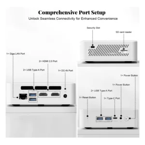- Advanced Connectivity: Mini PC Desktop not only features BT 5.2 and WiFi 6 for lightning-fast wireless connections but also boasts four USB 3.0 ports and a versatile USB Type-C port. With these connectivity options, you can transfer data at high speeds and connect a variety of peripherals with ease.