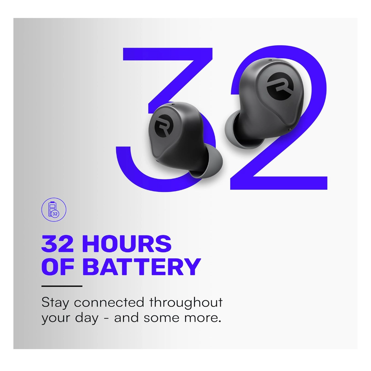 - 32 HOURS OF QUALITY SOUND | Fast Charge Technology: 1.5 hours of earbud battery from 10 minutes of case charging. The Raycon Everyday Earbuds last up to 8 hours playtime on a single charge. The complimentary compact charging case boasts a built-in 500 mAh battery that can charge your earbuds up to 3 times while on the go when fully charged.