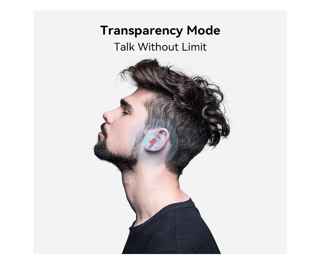 - 【Transparency Mode】The bluetooth headphones can choose transparency mode, the main principle is that there is a small microphone on the earbuds, which can absorb and transmit the sound of the surrounding environment and people’s speech to the earbuds. The ambient sound heard in the earbuds is very natural, not too loud or too small, and more comfortable. Wearing such earbuds to go shopping,ordering food or working does not need to take off the earbuds anymore.